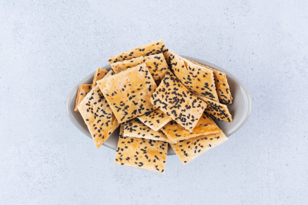 מוסיפים שומשום או קצח ולשים ידנית. מרדדים את הבצק בין 2 ניירות אפיה לעובי הרצוי ( אני אוהבת לרדד טוב לחצי סנטימטר לפחות )